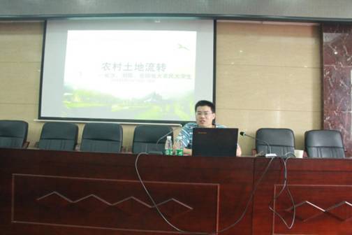 吴博士以独到的视角和思考,围绕当前农村发展中的热点和核心问题土地流转,从历史到现状,从政策到实际执行,从土地流转的理论到实际纠纷的解决,系统、全面解读土地流转这一热点,赢得了阵阵掌声。他还阐述了我国农村土地承包法律、政策的演进,我国农村土地承包主要法律规范、农民土地流转的推进进程、农村土地流转市场发展模式,解读了湖南省关于积极推进土地流转政策的意见和通知,并结合他在武冈市湾头镇桥头镇泻油村挂职担任第一党支书的实际经验谈土地流转的问题及纠纷的解决,给身处一线的农村基层干部上了极富启发的一堂课。