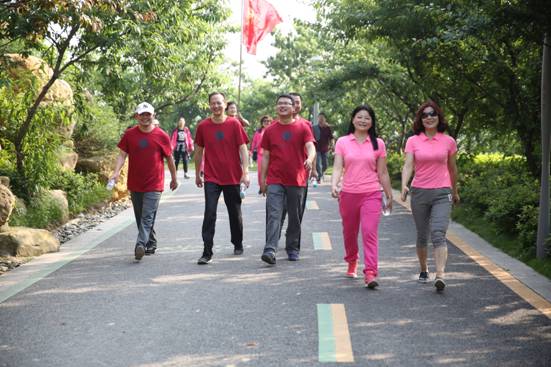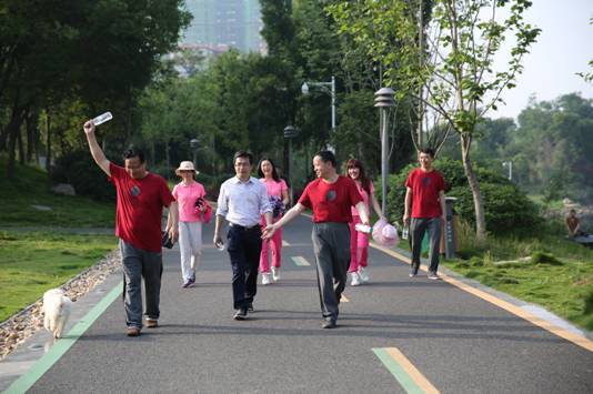下午4点10分全校教职工在大厅前坪集合,4点30分健步行活动正式开始,全校教职工以支部为单位,在王家河风光带沐浴着初夏的阳光,感受运动的快乐。在近2个小时的时间里,老师们徒步环王家河步行7公里,在行走中欣赏美景,交流心得,分享快乐,加深感情,既感受了大自然的壮美,又收获了集体活动的快乐。
