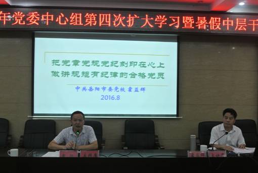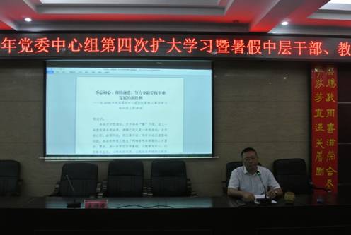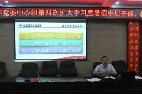为了进一步明确新学期学校发展的方向和思路,凝神聚力,抢抓机遇,开拓创新,为办好开放大学做足准备。我校于8月21日召开了党委理论中心组2016年第4次集中(扩大)学习暨中层干部培训班、教职工培训班,校领导、中层干部和全体教工参加了会议。