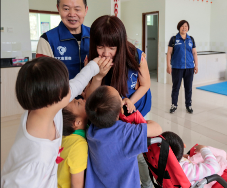 仪式结束后,在儿童福利院工作人员的带领下,志愿者们有序的走进宿舍、教室与那里的孤残儿童亲切互动。孩子们脸上洋溢着灿烂的笑容,天真无邪的笑声回荡在走廊里。