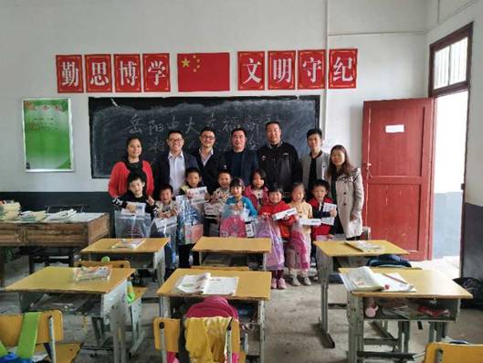 (岳阳电大行政支部向东福新村小学赠送学习用品)