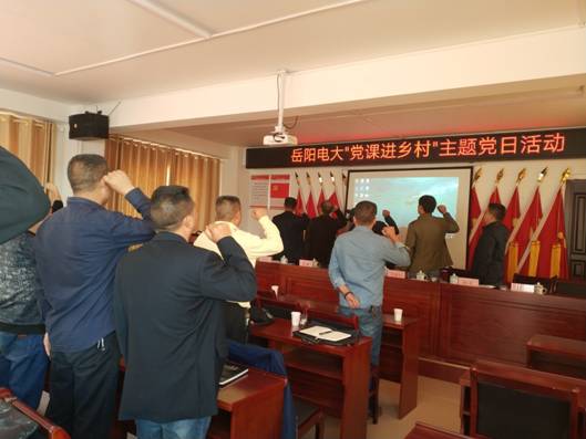 活动开始,全体党员同志伴着激昂的歌声齐唱《中华人民共和国国歌》,由陈文慧老师领誓重温入党誓词。东福新村总支书记杨争光同志热情洋溢致词对岳阳电大一行表示欢迎,玉华镇党委委员、副镇长赵君同志介绍了联系点东福新村的党建工作及今后打算。