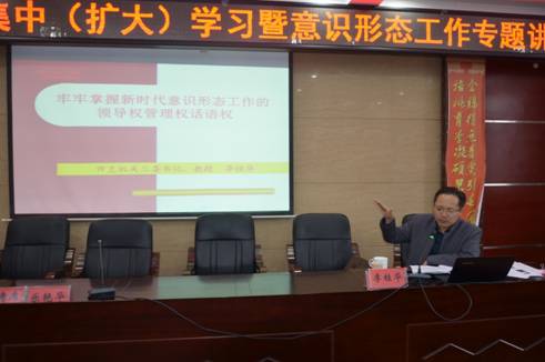 意识形态关乎旗帜,关乎道路,关乎国家政治安全。意识形态工作是党的一项极端重要的工作。11月13日,岳阳广播电视大学举行党委理论中心组集中(扩大)学习暨意识形态工作专题学习教育活动,全体党委班子成员、校领导和全校教职员工参加会议。邀请市委市直机关工委书记李桂华教授作《牢牢掌握新时代意识形态工作的领导权管理权话语权》的专题报告。会议由学校党委委员、纪委书记乐艳华主持。
