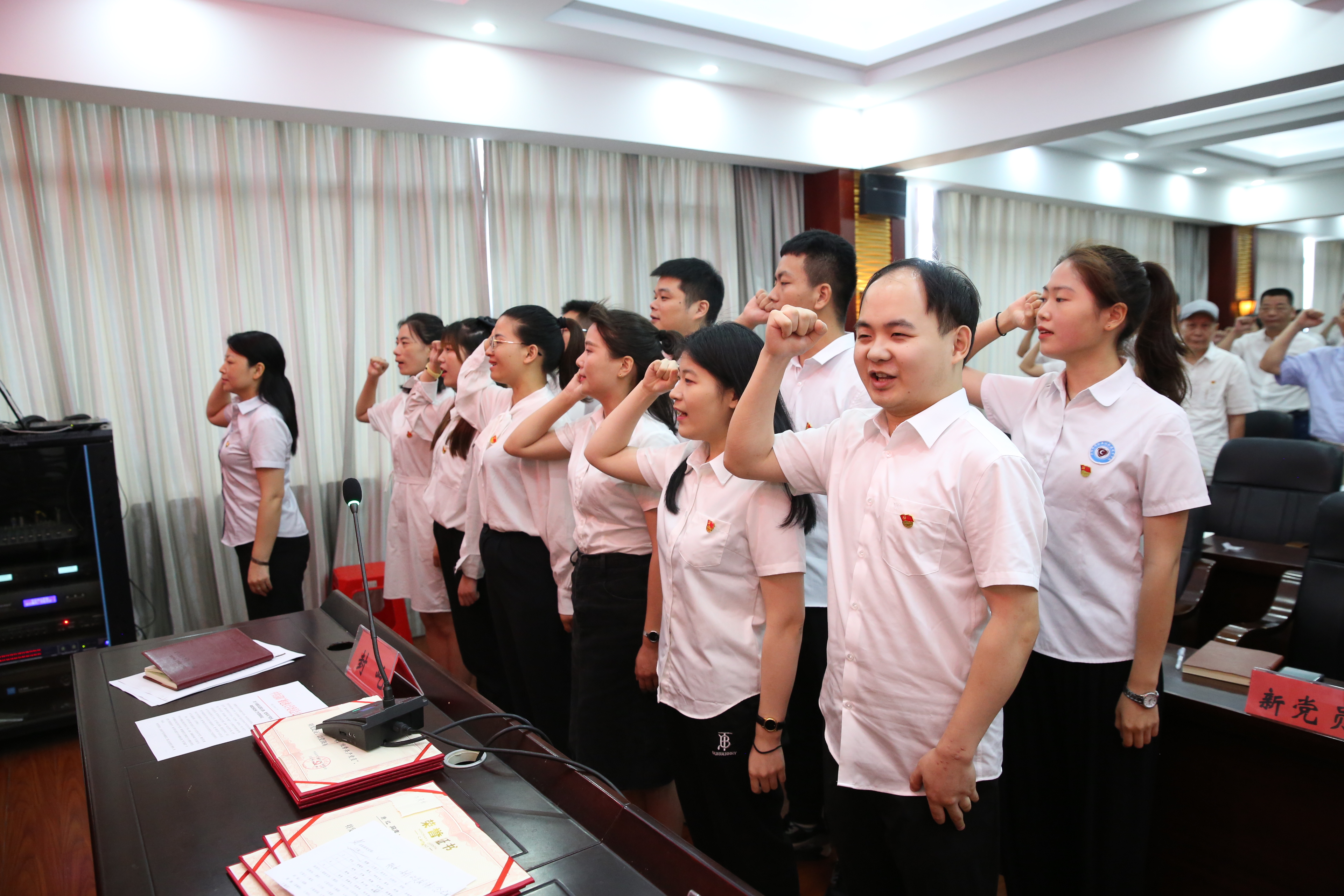 (党办副主任唐红带领新发展党员宣誓)