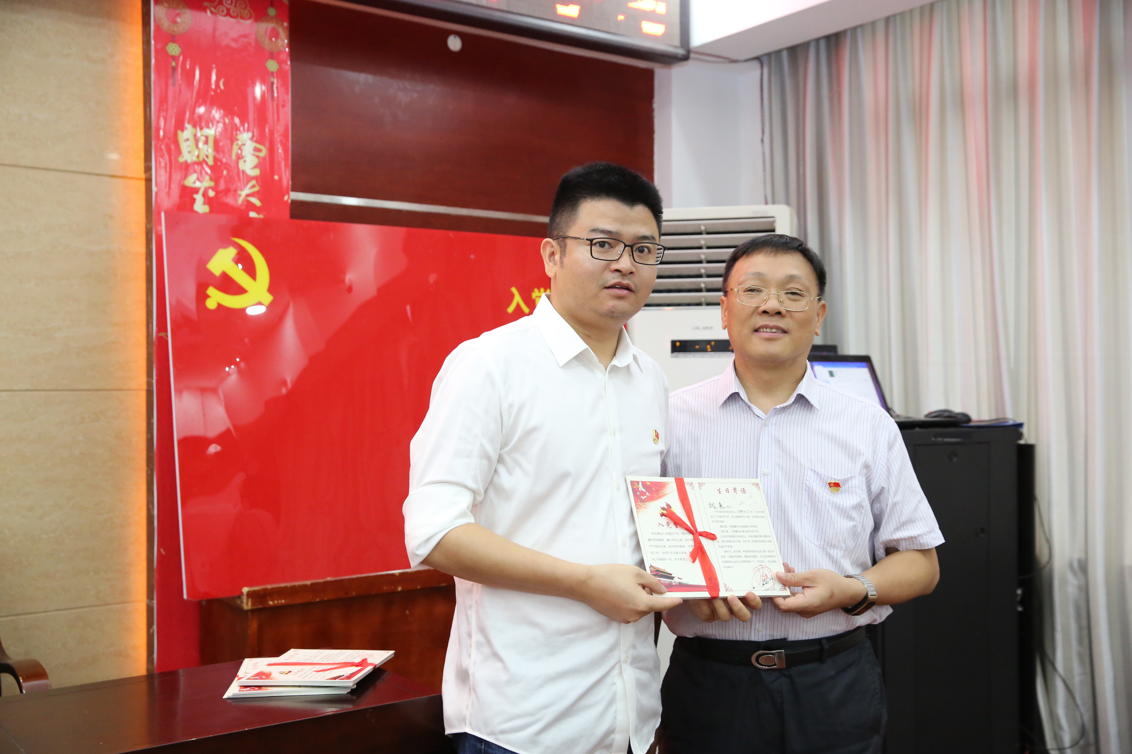 (党委书记陈美中为机关支部党员赠送政治生日贺卡)