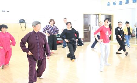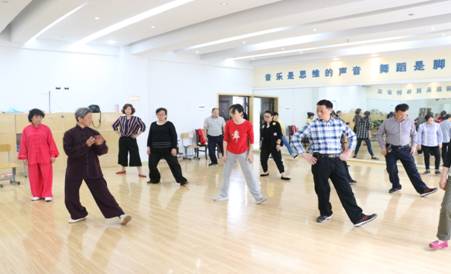 由学校工会牵头组织的太极拳学习兴趣小组每周三下午在教学楼二楼205舞蹈室定期进行,专门邀请有着多年习拳经验的太极拳爱好者方吉良老师进行现场指导。太极讲究“虚灵顶劲、含胸塌腰、松腰养气、分清虚实、沉肩坠肘、以意行气、上下相随、内外相合、招势相连、动中求静”,通过学习太极以达到“修身养性,强身健体”。