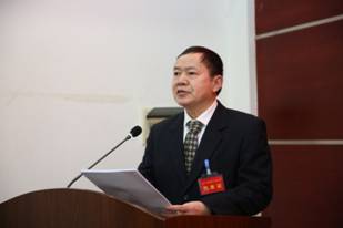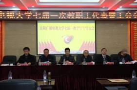 市教育工会副主席陈泉生宣读批复 | 学校党委委员、校长助理熊灏作财经报告 | 学校工会主席向旦伯作工会报告 |