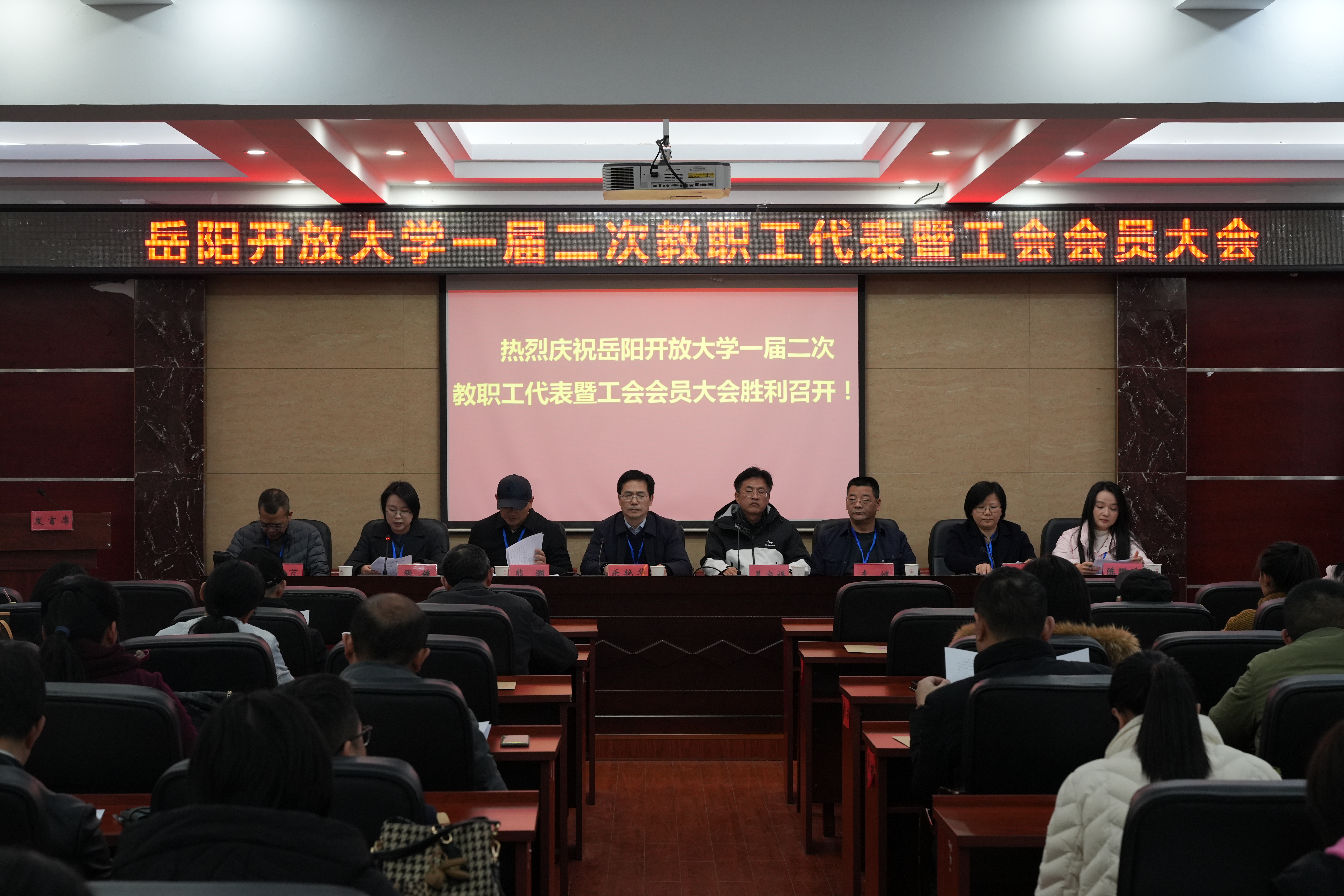 岳阳开放大学一届二次教职工代表暨工会会员大会胜利召开