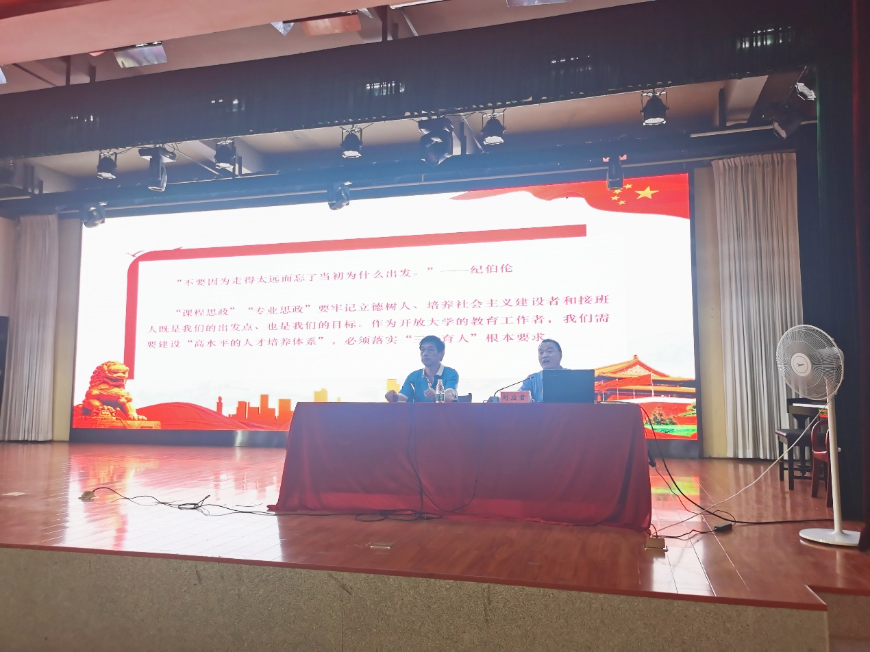 培训会上,首先由教务处主任杨日新同志讲解了课程思政的背景及其重要性,并通报了我校近年来课程思政开展的情况,强调了我校开展课程思政的现实性与紧迫性,随后展示了湖南开放大学第三届课程思政说课比赛的优秀作品,进一步统一了教师们开展课程思政的政治意识与责任意识。
