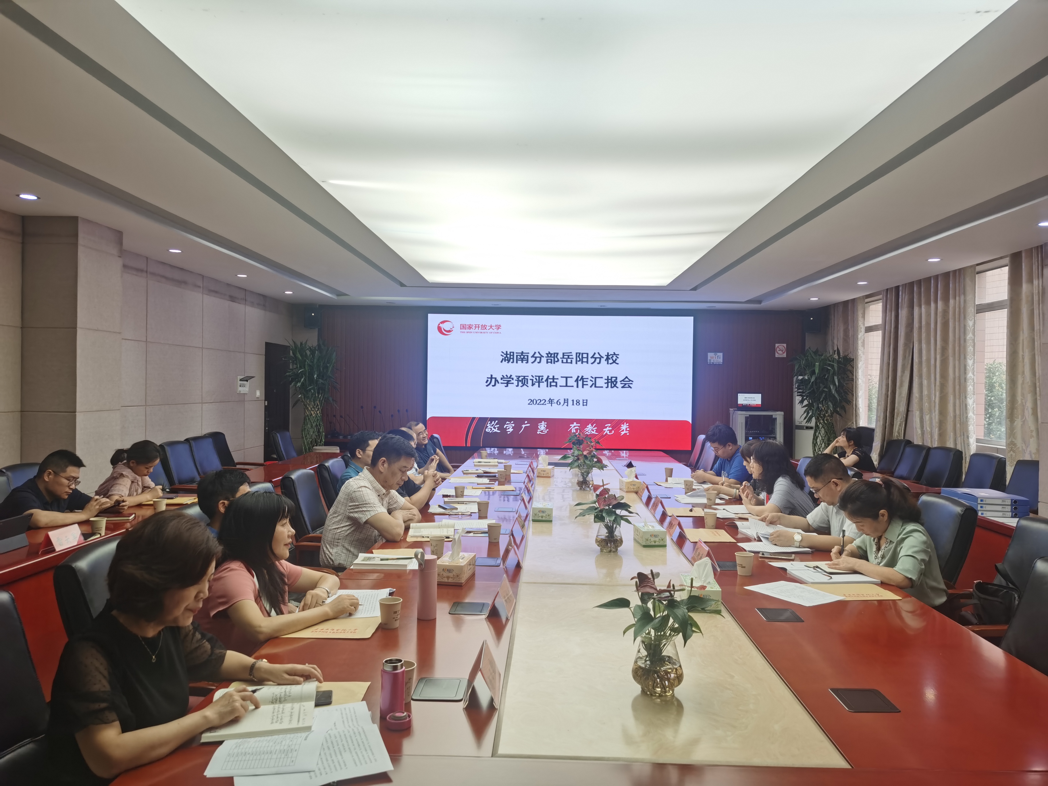 2022年6月18日,根据湖南开放大学关于办学预评估工作的安排与部署,湖南开放大学办学体系实地评估专家组一行5人,在专家组组长、福建开放大学教务处副处长孔敏教授带领下对岳阳开放大学办学工作进行了实地评估。