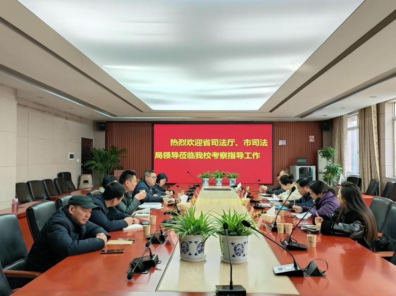 2023年2月15日下午,省司法厅法律职业资格管理与对外合作交流处处长刘刚魁,在市司法局政治部主任王婕和法考科长汪秋林的陪同下,一行6人来我校进行全国统一法律职业资格考试工作调研。会议由党委委员、副校长姜宗福主持。