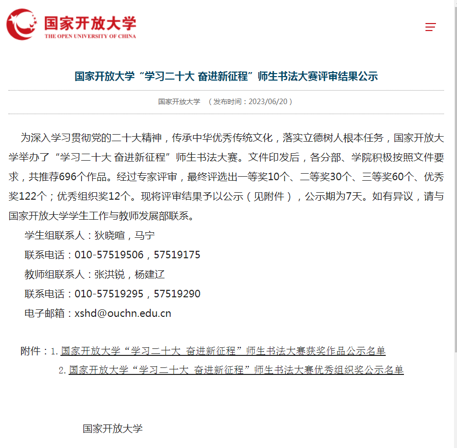 喜报!岳阳开放大学荣获国家开放大学“学习二十大 奋进新征程”师生书法大赛教师组优秀奖