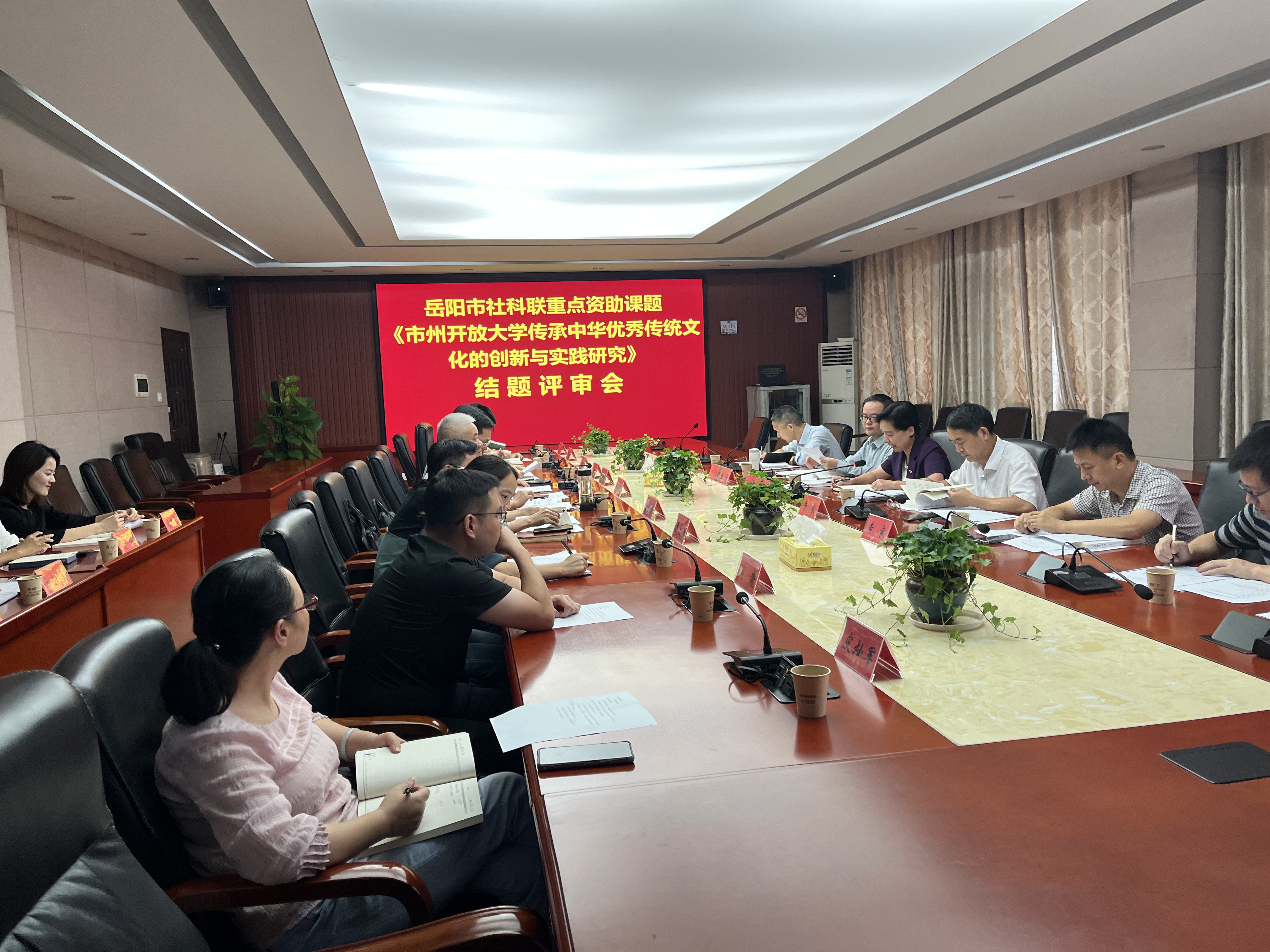 9月13日,2021年和2022年度岳阳市社会科学重点课题《市州开放大学传承中华优秀传统文化的创新与实践研究》、《开放大学对接乡村振兴的“乡土关键人才”培育研究——以岳阳市为例》课题结题评审会在学校218会议室召开。评审会由市社科联组织。评审专家组由市社联党组书记、主席、副研究馆员任欣欣等5人组成评审专家组。党委书记李有根,党委副书记、校长乐艳华,党委委员、副校长姜宗福及2个课题组相关成员参加会议。
