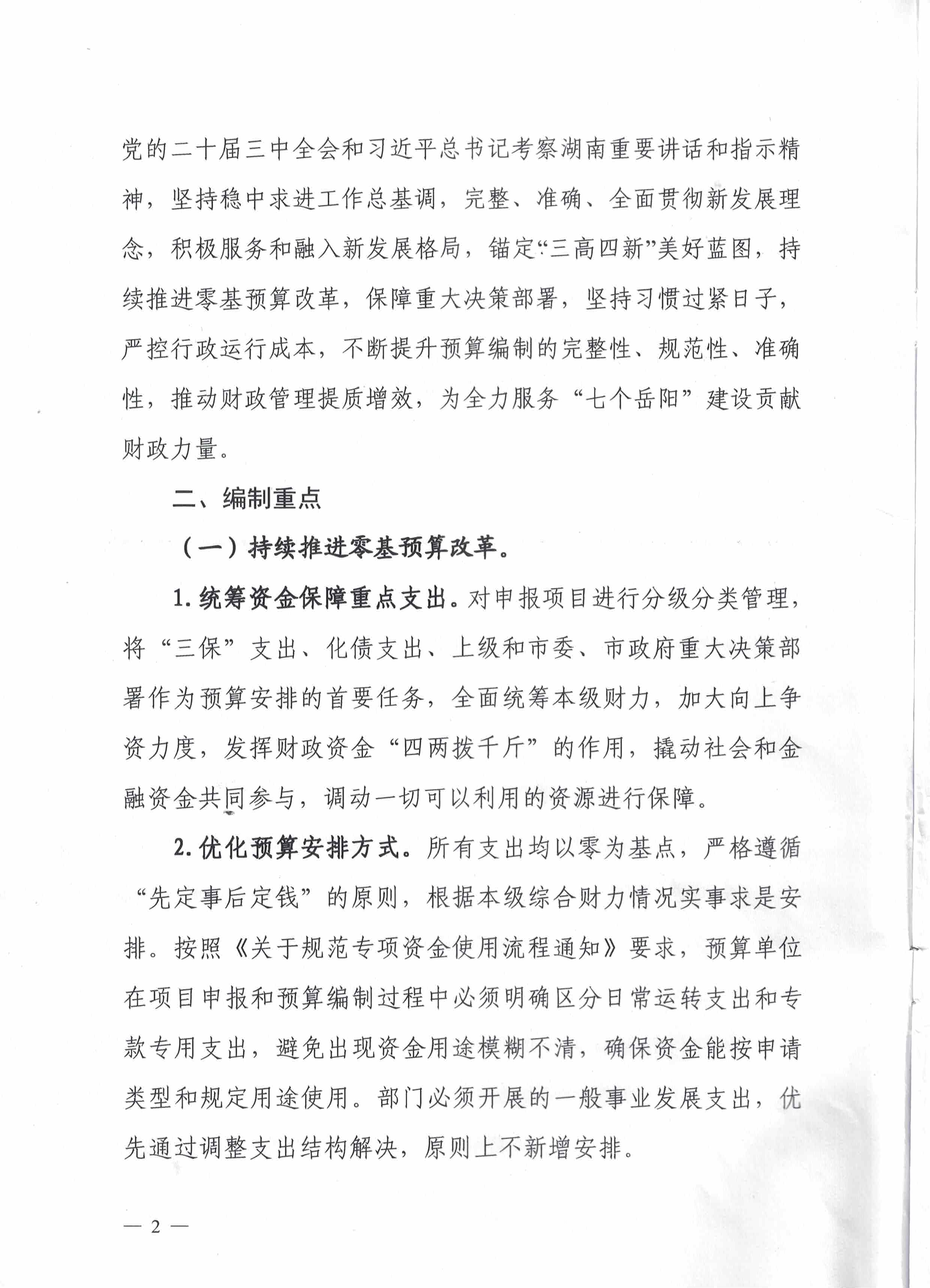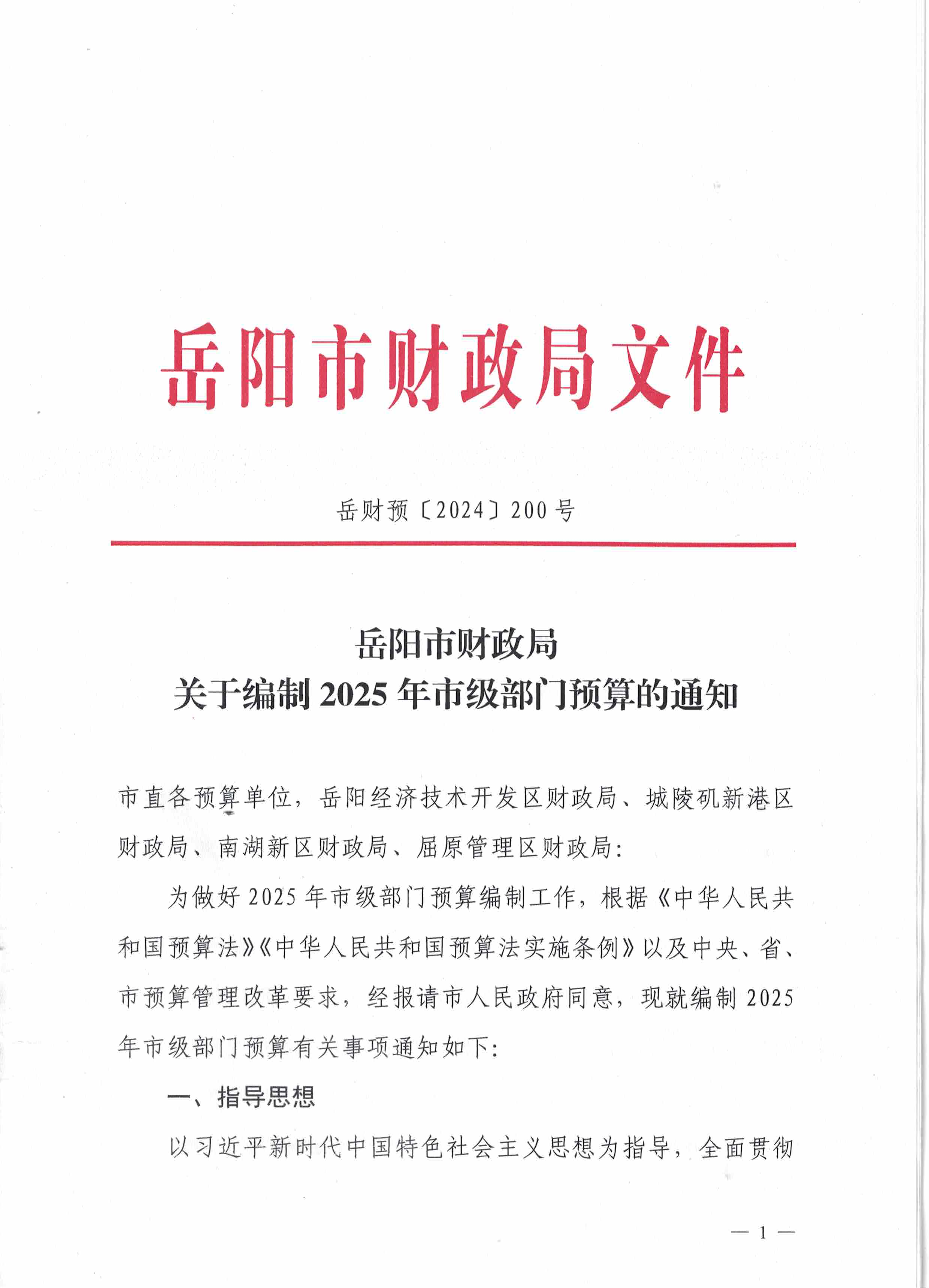 岳阳市财政局关于编制2025年市级部门预算的通知
